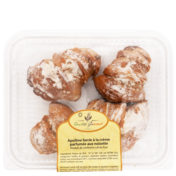 Les apolline au noisettes sont de délicieux petits gâteaux au coeur tendre, remplis d’une crème veloutée à la noisette et enrobés d’une pâte croustillante. Idéals pour une pause gourmande, ils offrent une expérience de goût raffinée, parfaite pour ceux qui aiment le goût riche et intense de la noisette. Les apolline sont parfaites dégustées au petit-déjeuner, en dessert ou pour un instant de douceur à tout moment de la journée. Disponibles en sachets qui conservent toute leur fraîcheur et leur parfum.