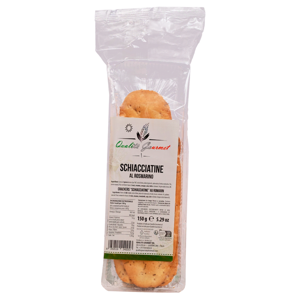 Les schiacciatine au romarin sont une délicieuse spécialité croustillante et parfumée. Avec leur pointe de saveur méditerranéenne, elles sont parfaites pour agrémenter votre table. Réalisées avec de la farine de très bonne qualité et enrichies de romarin, elles offrent une expérience gustative unique et parfumée. Idéales pour accompagner antipasti, fromages et charcuterie ou dégustées pour un en-cas gourmand, elles sont parfaites pour toute occasion, de l’apéritif au dîner. Grâce à leur croquant et au parfum inimitable du romarin, elles sont irrésistibles et délicieuses à chaque bouchée.