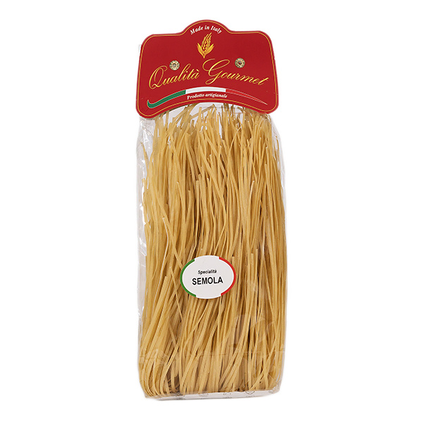 Les linguine à la semoule sont longues et fines, elles sont réalisées avec de la farine de semoule de blé dur de très bonne qualité. Elles se caractérisent par leur consistance parfaite et leur légère rugosité qui permet de bien retenir les assaisonnements (sauces,etc). Les linguine à la semoule sont idéales pour rehausser les sauces aux fruits de mer, le pesto et les sauces onctueuses. Leur versatilité en fait un must en cuisine… Elles s’adaptent aussi bien à des plats simples qu’à des préparations plus sophistiquées, ce qui garantit toujours un résultat savoureux et authentique.