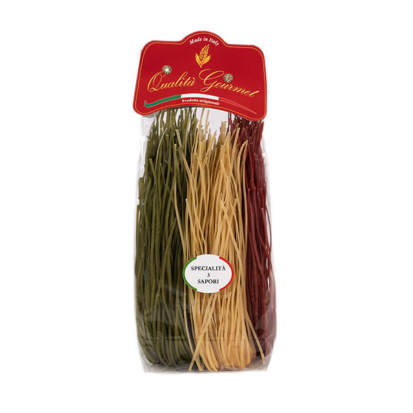 Ces linguine associent goûts et couleurs dans un seul plat qui saura vous séduire. Enrichies d’ingrédients naturels (épinards, tomate et semoule de blé dur), ces pâtes offrent une harmonie de saveurs délicates et persistantes. Elles sont parfaites associées à des sauces légères ou à des assaisonnements frais. Ces linguine sont idéales pour ceux qui veulent ajouter une pointe de créativité et de couleur sur leur table, sans renoncer à la qualité et au goût des pâtes artisanales.