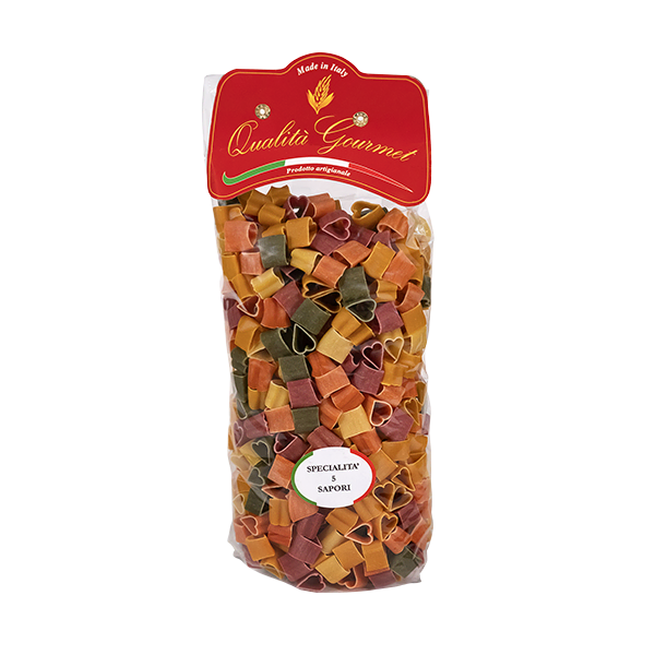 Ces cuoricini réunissent goût et créativité, ils sont enrichis d’ingrédients naturels (épinards, tomate, betterave, curcuma et semoule de blé dur). Chaque cuoricino, coloré et savoureux, apporte sur votre table un mélange de saveurs délicates et prononcées. Ils sont parfaits et transforment aussi bien les plats quotidiens que les occasions plus importantes en un moment spécial. Avec leur forme romantique et unique, ils sont idéals pour des sauces légères et font de chaque plat une expérience divertissante et délicieuse.