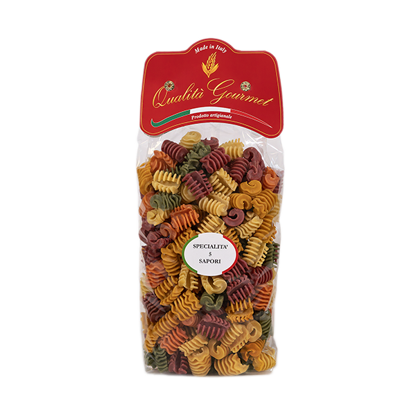 Ces spumoni colorés apportent une touche de vivacité, ils sont réalisés avec des ingrédients naturels (épinards, tomate, betterave, curcuma et semoule de blé dur).Chaque couleur représente un goût délicat et apporte joie et saveur dans vos plats. Leur forme fine et particulière retient parfaitement les sauces, ils sont idéals avec des assaisonnements onctueux ou légers. Parfaits pour ceux qui recherchent des pâtes originales et colorées qui réunissent goût et divertissement à table.