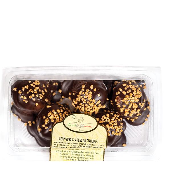 Nos Meringues au Gianduja associent la légèreté des meringues traditionnelles à l’intensité raffinée du chocolat. Aériennes et moelleuses à l’intérieur, délicatement croquantes à l’extérieur, elles sont enrichies d'un glaçage au chocolat avec graines de noisettes qui en sublime la saveur unique et enveloppante. Parfaites à déguster seules, pour accompagner thé, café ou desserts, ou pour apporter une touche élégante et gourmande à vos créations sucrées. Une délicatesse raffinée, pensée pour ceux qui aiment les saveurs authentiques et irrésistibles.