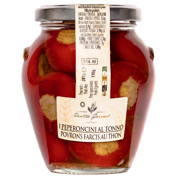 Les petits poivrons au thon sont l’alliance parfaite entre le piquant des poivrons et la délicatesse du thon. Farcis avec du thon enrichis avec une crème d'anchois, câpres et persil, ces poivrons offrent une saveur irrésistible et captivante. Idéals pour des apéritifs gourmands ou pour accompagner vos plats de poisson, ils ajoutent une note raffinée et piquante en toute occasion.